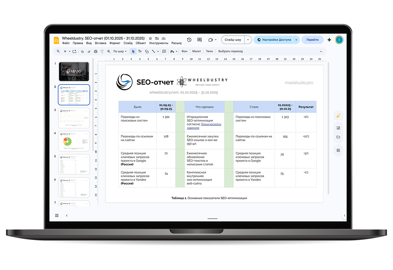 В 2025 году команда Maxi Studio обеспечила стабильный рост цифровых показателей: 282 заказа через сайт, 1752 целевых звонка и 849 заказов в мессенджерах при коэффициенте рекламной конверсии 5,6 и CPL 1488 руб., увеличив трафик на сайт на 46,14%. Достичь таких результатов удалось за счёт комплексного подхода к продвижению: системной работы с SEO, постоянного тестирования рекламных гипотез и внедрения сквозной аналитики. В результате была выстроена прозрачная и управляемая система привлечения клиентов с возможностью масштабирования.